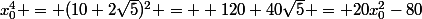 ^2 = 120+40\sqrt{5} = 20x_0^2-80)