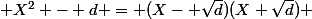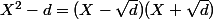 Soit tu as vu que K[X]/P où P est un polynôme IRREDUCTIBLE sur K est une extention de K de degrés le degrés du polynôme P et dans ce cas il suffit d'expliquer pourquoi X^2-d est irréductible sur Q (c'est là qu'intervient le "sans facteur carré")