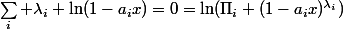 =0=\ln(\Pi_i (1-a_ix)^{\lambda_i}))
