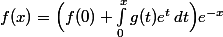 =\Big(f(0)+\int_0^xg(t)e^t\,dt\Big)e^{-x}\)