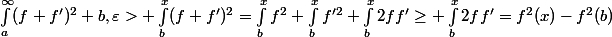 ^2 b,\ \ \ \varepsilon> \int_b^x(f+f')^2=\int_b^xf^2+\int_b^xf'^2+\int_b^x2ff'\geq \int_b^x2ff'=f^2(x)-f^2(b))