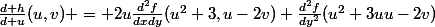 d²F/du² (u,v) = df/dx * 2 + d²f/dx² * (2u)² + (d²f)/(dxdy) *4u + (d²f)/(dy²)