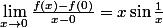 moi je trouve que f'(0)=1 car f(x)-f(0)/(x-0)=xsin(1/x)