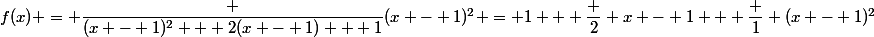 a) Déterminer trois réels a,b,c tels que, pour tout x appartenant à R-{1}, f(x)=a + [b/(x-1)] +[c/(x-1)²]