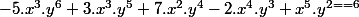 = -5.x^{3}.y^{6}+3.x^{3}.y^{5}+7.x^{2}.y^{4}-2.x^{4}.y^{3}+x^{5}.y^{2} - 6 $)
