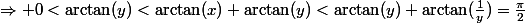 <0\\0 <\arctan(y)<\frac{\pi}{2} \end {matrix} \Rightarrow -\frac{\pi}{2}<\arctan(x)+\arctan(y)<\frac{\pi}{2})