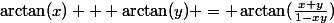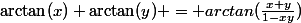 +\arctan(y) = arctan(\frac{x+y}{1-xy}))