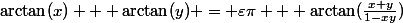 + \arctan(y) = \varepsilon\pi + \arctan(\frac{x+y}{1-xy}))