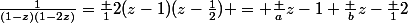 (1-2z)}=\frac {1}{2(z-1)(z-\frac{1}{2})} = \frac {a}{z-1}+\frac {b}{z-\frac {1}{2}})