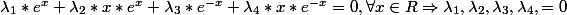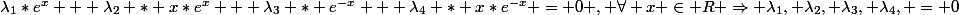 En dérivant successivement l'expression ci-dessus 4 fois, dont les dérivées sont identiquement nulles et en évaluant chaque fois en zéro j'obtiens 4eq. qui me permettent de verifier in fine que la famille est libre.