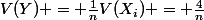 1) En utilisant l'inégalité de Chebychev, trouvez toutes les valeurs de n telles que la probabilité que Y soit à moins de 1 unité de son espérances est au moins de 99%.