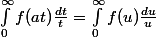-f(a t) \frac {dt}{t} = \int_{bx}^{by}\frac{f(t)}{t}dt - \int_{ax}^{ay}\frac{f(t)}{t}dt<br />\\ = \int_{ax}^{bx}\frac{f(t)}{t}dt + \int_{ay}^{by}\frac{f(t)}{t}dt = \int_{a}^{b}\frac{f(t x)}{t}dt + \int_{a}^{b}\frac{f(t y)}{t}dt)