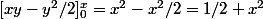 Quand on intègre par rapport à y je trouve (1/2)x^2 à la place de x^2-x^3/6