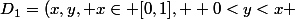 Pour D1, j'obtiens (1/2)*(x-x^2) donc l'intégrale de la valeur absolue de x-y sur D vaut x-x^2