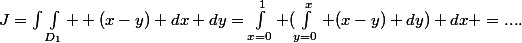 dx dy=\int_{x=0}^1 (\int_{y=0}^x (x-y) dy) dx =....)