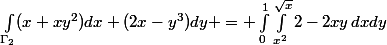 Le domaine est bien D2 = {(x,y)R² | 0<= x <= 1, x² <= y <= Vx} et on doit calculer