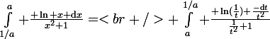 - inté de 1/a à a de (ln x / 1+x^2) faire le chgt de variable x=1/t