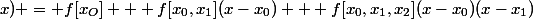= f[x_O] + f[x_0,x_1](x-x_0) + f[x_0,x_1,x_2](x-x_0)(x-x_1))