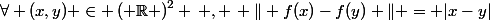 \in \left( \mathbb{R} \right)^{2} \, , \, \| f(x)-f(y) \| = |x-y|)