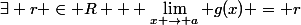 Zygo : j'ai très bien lu ce que tu as écrit: tu dis que "g a une limite en a si il existe r tel quel lim g(x)=r", la notation "lim g(x)=r" sous entend que la limite existe, donc en gros tu dis que "g a une limite si g a une limite" ce qui n'a aucun sens.