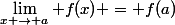 Comme je l'ai dit, si f admet une limite finie en aI alors f est continue, et la limite vaut necessairement f(a).