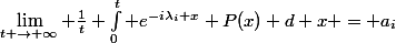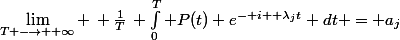 e^{- i \lambda_{j}t} dt| \leq \frac{1}{T} \left( |\int_{0}^{T_{0}} P(t) e^{- i \lambda_{j}t} dt+|\int_{T_{0}}^{T} P(t) e^{- i \lambda_{j}t} | \right)<br />\leq M \frac{T_{0}}{T} + \epsilon \frac{T-T_{0}}{T})