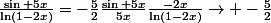 }=-\frac{5}{2}\frac{\sin 5x}{5x}\frac{-2x}{\ln(1-2x)}\to -\frac{5}{2})