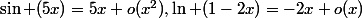 =5x+o(x^2),\ln (1-2x)=-2x+o(x))