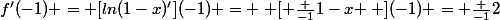 = [ln(1-x)'](-1) = \left [ \frac {-1}{1-x} \right ](-1) = \frac {-1}{2})
