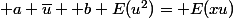 = E(xu) \\<br />\displaystyle a E(yu) +b E(yu^2)= E(xyu))