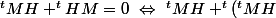 \ \Leftrightarrow\ ^tMH +^tHM=0\ \Leftrightarrow\ ^tMH +^t(^tMH)=0)