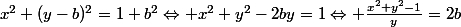 ^2=1+b^2\Leftrightarrow x^2+y^2-2by=1\Leftrightarrow \frac{x^2+y^2-1}y=2b)