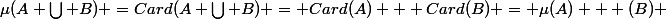 =Card(A \bigcup B) = Card(A) + Card(B) = \mu(A) + \mu(B) $)
