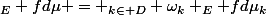 \\<br />= \bigsum_{k\in D} \omega_k \Bigint_E fd\mu_k)