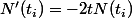 Une ligne pour t, une ligne pour N'(t), et une ligne pour N(t).