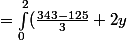 -(\frac{5^3}{3}+ 5y) \: dy=\int_0^2 (\frac{7^3-5^3}{3} + 2y) \: dy)