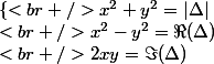 \\<br />2xy=\Im(\Delta)\\)