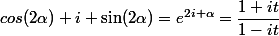 +i \sin(2\alpha)=e^{2i \alpha}=\dfrac{1+it}{1-it})