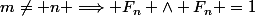 En développant la dernière expression avec la formule du binôme, on obtient une relation u(Fm)+v(Fn)=2 où u et v sont des entiers qu'il n'y a pas à expliciter. Ainsi le PGCD de Fn et Fm divise 2 et il est clair que ce n'est pas 2.