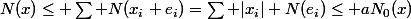 \leq \sum N(x_i e_i)=\sum |x_i| N(e_i)\leq aN_0(x))