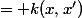 D'après le lien c'est la définition de la forme bilinéaire , c'est une forme bilinéaire sur l'espace engendré par les fonctions k(x,.) donc c'est normal qu'il y ait des « k(x,.) » dedans. Ils parlent en exemple du noyau gaussien où pour tout x k(x,.) est une gaussienne centrée en x, dans ce cas on a