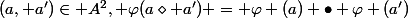 \in A^{2}, \varphi(a\diamond a') = \varphi (a) \bullet \varphi (a'))