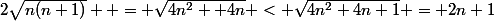 } = \sqrt{4n^2+ 4n} < \sqrt{4n^2+4n+1} = 2n+1)