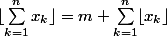 \in {\mathbb R}^n)(\exists m \in \{0, \cdots , n-1\}) \qquad \lfloor \sum_{k=1}^n x_k \rfloor =m+ \sum_{k=1}^n \lfloor x_k \rfloor)