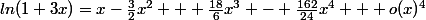 =3x-9x^2/2+9x^3-81 x^4/4+o(x^4))