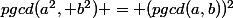si pgcd(a,b)=1 alors pgcd(a, b^2) =1 et pgcd(b, a^2) =1
