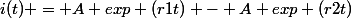 on sait que d'une manière générale i(t) = A exp (r1t) + B exp (r2t)