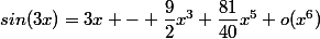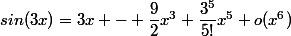=3x - \dfrac{9}{2}x^3+\dfrac{3^5}{5!}x^5+o(x^6))