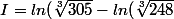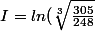 I = 1/3.ln(12+96+197) - 1/3.ln(3+48+197)