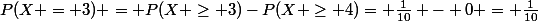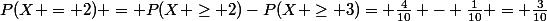 3- Décrire l'événement (X=2). Retrouvez ainsi la valeur de P(X=2)